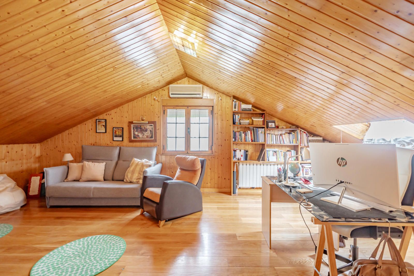 La buhardilla es un espacio polivalente y cautivador, con techos abuhardillados altos revestidos de madera que aportan una calidez inigualable. Actualmente acondicionada como un despacho y sala de estar, es el lugar perfecto para trabajar, estudiar o disfrutar de un momento de tranquilidad, con amplios ventanales y luz cenital que ilumina el área de trabajo y la zona de relax.La vivienda también cuenta con un sótano, proporcionando un valioso espacio extra para almacenamiento, gimnasio, sala de juegos o bodeguita exclusiva, adaptándose a cualquier necesidad.