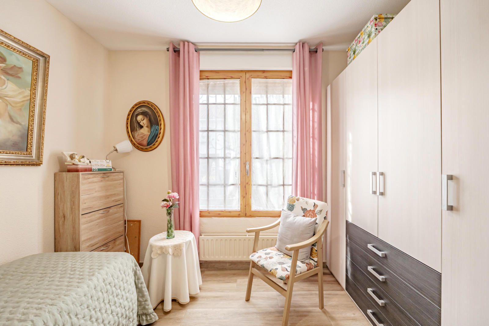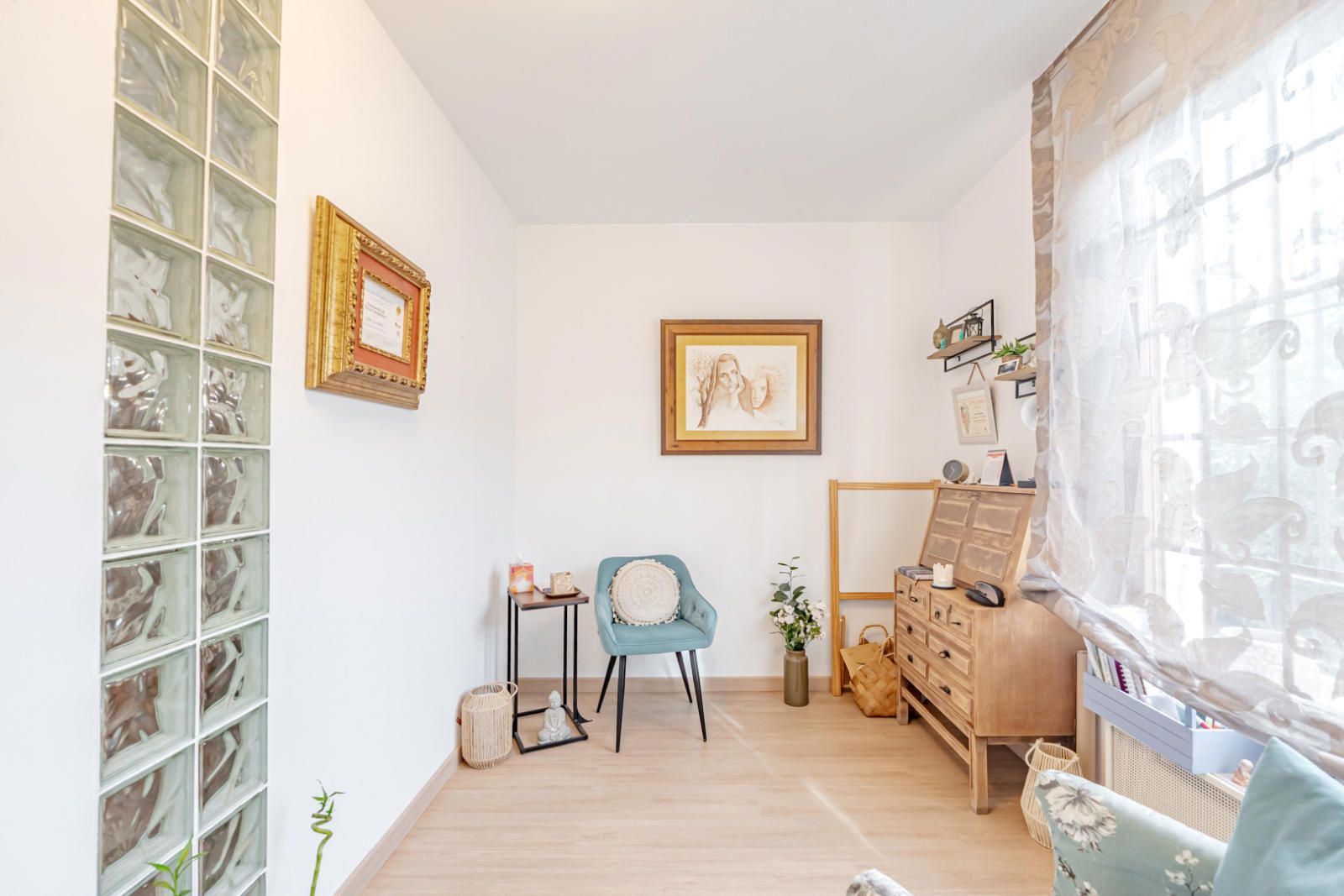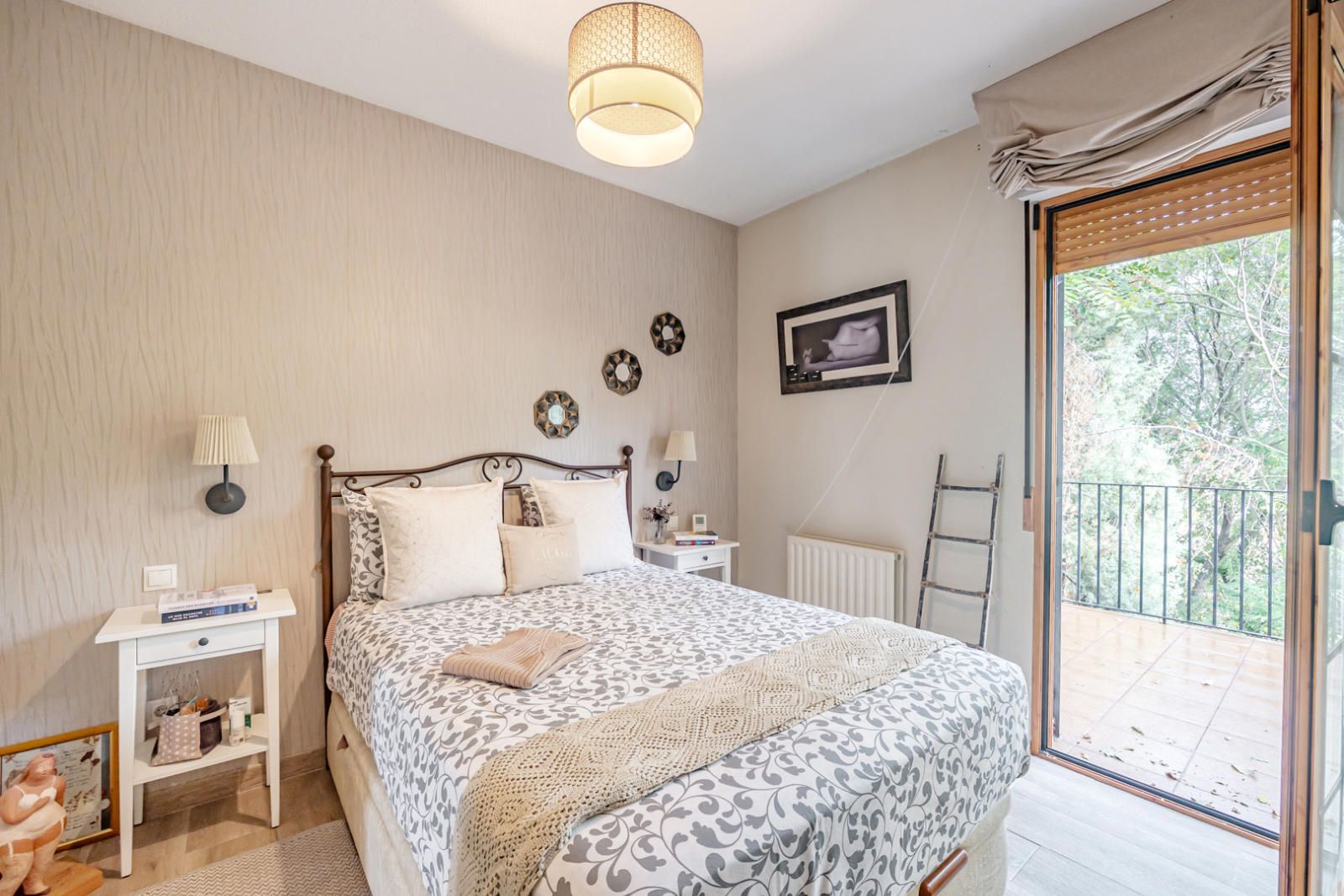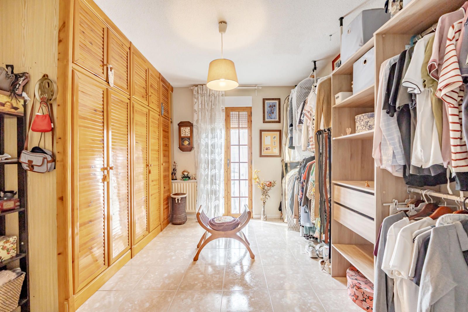 La vivienda alberga un total de seis habitaciones y tres baños completos, garantizando espacio para todos. El dormitorio principal es un santuario de descanso, con un ambiente sereno y acceso a una de las dos terrazas, que cuenta con un suelo cerámico de inspiración tradicional. Además, la casa cuenta con un amplio vestidor bien organizado, con una mezcla de armarios de madera maciza y estanterías abiertas que ofrecen soluciones de almacenamiento impecables para su colección de ropa y accesorios. El diseño interior de los dormitorios combina la calidez de la madera con la sobriedad de tonos claros, creando refugios personales acogedores.