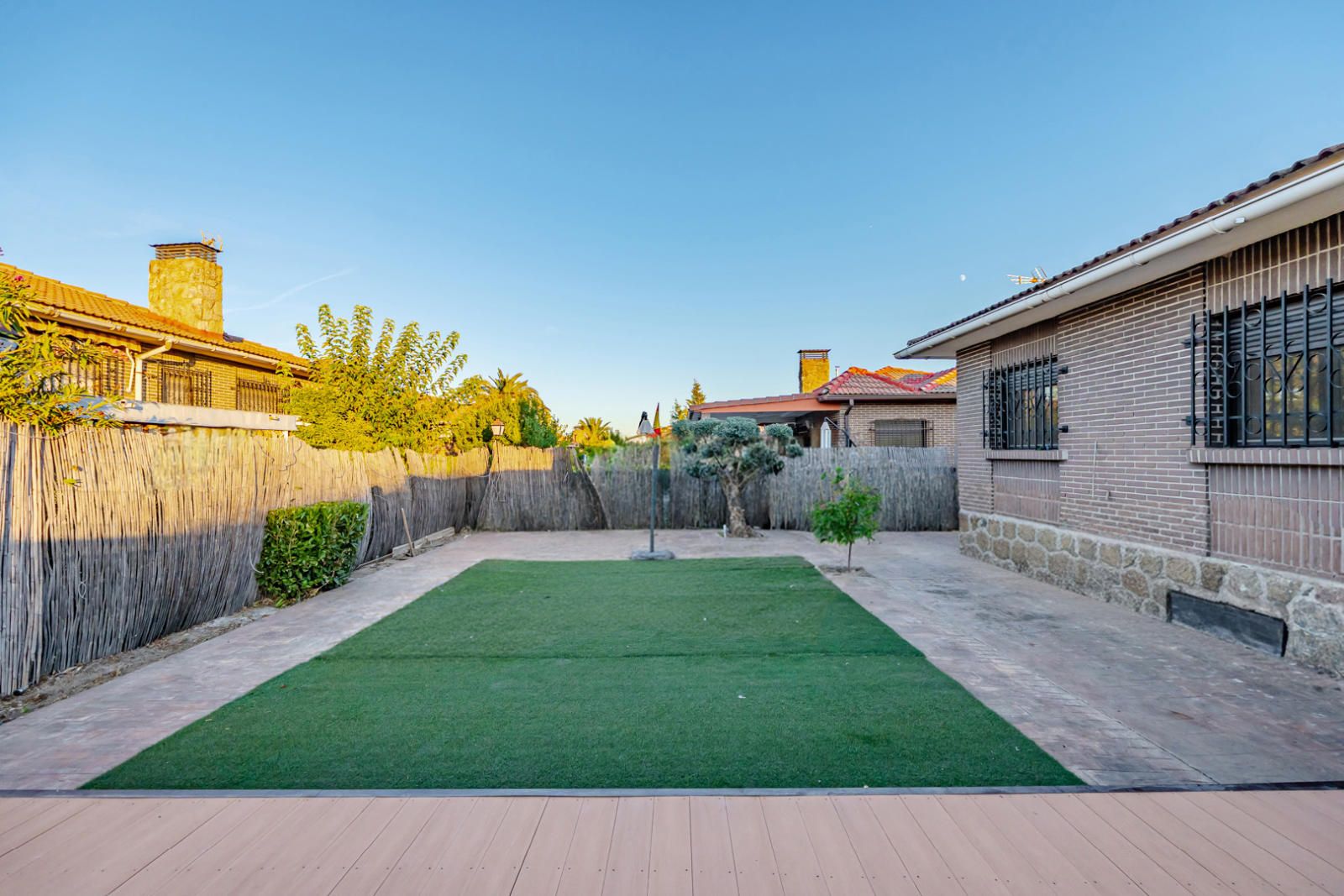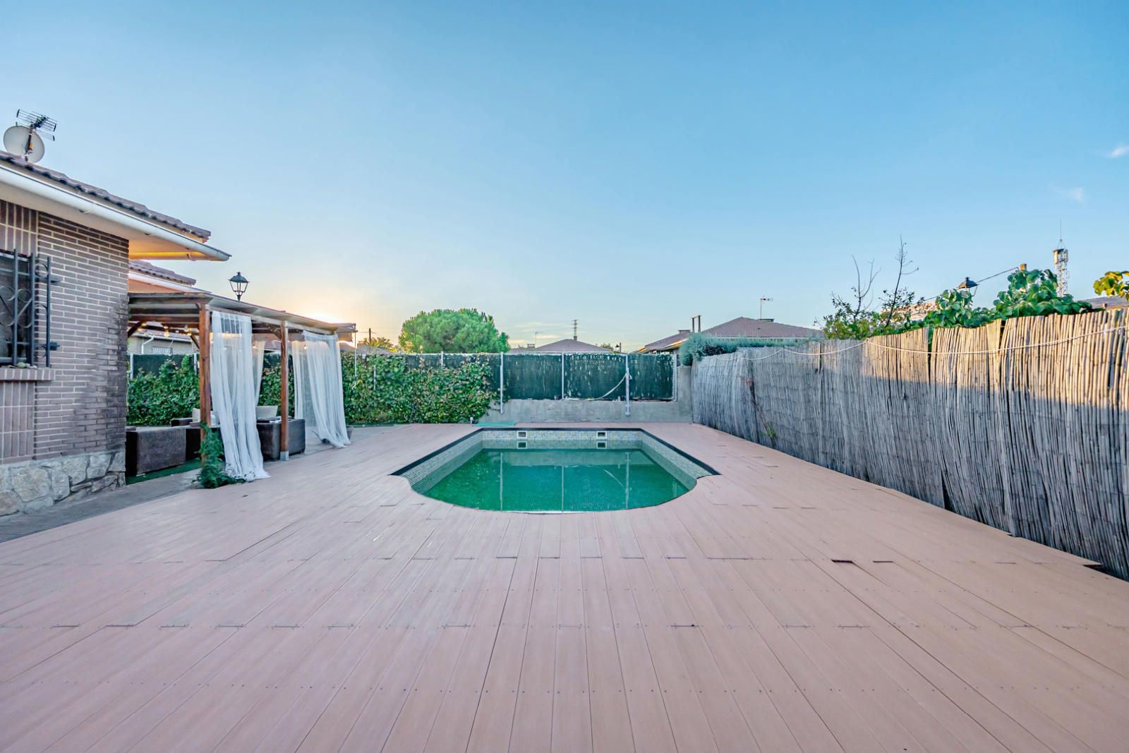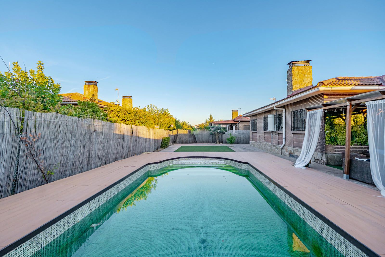 Un Oasis Autosuficiente de Tranquilidad y Confort en GriñónDescubre este impresionante chalet independiente, una propiedad que combina a la perfección la comodidad de la vida moderna con la paz y la autosuficiencia energética. Situado en una de las zonas residenciales más tranquilas de Griñón, este hogar ha sido completamente reformado para ofrecer una experiencia de vida excepcional. Con una distribución inteligentemente diseñada en una sola planta principal, se adapta a la perfección a cualquier estilo de vida, desde familias hasta parejas que buscan un refugio de paz. La cercanía a servicios esenciales como paradas de autobús, farmacias, el centro de salud, colegios y zonas deportivas, lo convierte en una opción inigualable.Al cruzar el umbral, te recibirá un luminoso hall de entrada que te invita a explorar una vivienda donde cada espacio ha sido cuidadosamente pensado. La distribución en una sola planta facilita la vida diaria, creando un flujo natural entre las estancias. El corazón de la casa es su espacioso salón comedor, un lugar perfecto para el ocio y el esparcimiento. Con una pared de piedra natural que añade un toque rústico y sofisticado, este espacio es ideal para reunir a la familia o disfrutar de una velada tranquila. La luz natural inunda la estancia gracias a los amplios ventanales, creando una atmósfera cálida y acogedora. Además, el aire acondicionado asegura un confort óptimo durante los meses más cálidos.La cocina es un verdadero deleite para los amantes de la gastronomía. Moderna y funcional, destaca por su elegante península que maximiza el espacio de trabajo y almacenamiento, y un práctico office perfecto para desayunos rápidos o comidas informales. La cocina está equipada con electrodomésticos de alta gama y tiene acceso directo a la parte trasera de la casa, donde se encuentra un encantador porche, el lugar perfecto para disfrutar de comidas al aire libre con vistas al jardín.La planta principal también alberga dos dormitorios que ofrecen privacidad y confort. El dormitorio principal es un auténtico santuario de paz, con su propio baño en suite y un moderno sistema de aire acondicionado que garantiza un descanso reparador. El segundo dormitorio es igualmente espacioso y cuenta con un generoso vestidor, proporcionando una solución de almacenamiento elegante y práctica. La vivienda cuenta con otro baño completo, moderno y funcional, que da servicio a la segunda habitación y a las visitas.Un Paraíso Exterior y una Planta Adicional de VersatilidadEl exterior de la propiedad es un oasis privado que invita a la relajación y al disfrute. El jardín, cuidadosamente diseñado, ofrece un entorno idílico con diferentes áreas de ocio. Una de las zonas más destacadas es la espectacular piscina privada, un espacio refrescante rodeado de una tarima de madera que crea un ambiente de lujo y exclusividad. Cerca de la piscina, se encuentra un acogedor rincón con sillones de exterior bajo un porche, ideal para socializar o simplemente relajarse a la sombra. Un área de césped artificial y otra de baldosas de hormigón impreso ofrecen una variedad de texturas y usos, creando un paisaje exterior dinámico y funcional.Además de la planta principal, la vivienda cuenta con una sorprendente planta inferior, que amplía significativamente las posibilidades de uso del hogar. Esta planta está distribuida en un espacioso salón comedor adicional, perfecto para convertirse en una sala de juegos, un gimnasio en casa, o un cine privado. Un baño completo en esta planta añade gran versatilidad. También se encuentra aquí un cuarto de la colada y un amplio trastero, proporcionando un almacenamiento indispensable para mantener la casa organizada y despejada.Sostenibilidad y Eficiencia EnergéticaLo que realmente distingue a esta propiedad es su compromiso con la sostenibilidad. La instalación de quince placas solares convierte a este chalet en un hogar autosuficiente desde el punto de vista energético, reduciendo drásticamente los costes de electricidad y minimizando su huella de carbono. Esta característica no solo es una inversión inteligente a largo plazo, sino que también ofrece la tranquilidad de saber que vives en una casa moderna y responsable.En resumen, este chalet en Griñón es una oportunidad única de adquirir una vivienda reformada, autosuficiente y con todas las comodidades que podrías desear, en una ubicación privilegiada. Sus espacios interiores luminosos y funcionales, combinados con un espectacular jardín con piscina y la ventaja de una planta inferior versátil, lo convierten en el hogar ideal para aquellos que buscan calidad de vida, confort y sostenibilidad.* El precio de la oferta puede ser modificado o darse de baja sin previo aviso. Todos los datos expuestos son meramente orientativos. El precio no incluye impuestos ni gastos. Se debe añadir a la compra en viviendas de segunda mano el ITP, ( según tramo de precio, ) en viviendas de Obra Nueva el IVA y AJD y en ambos casos los honorarios de notaria y registro*.