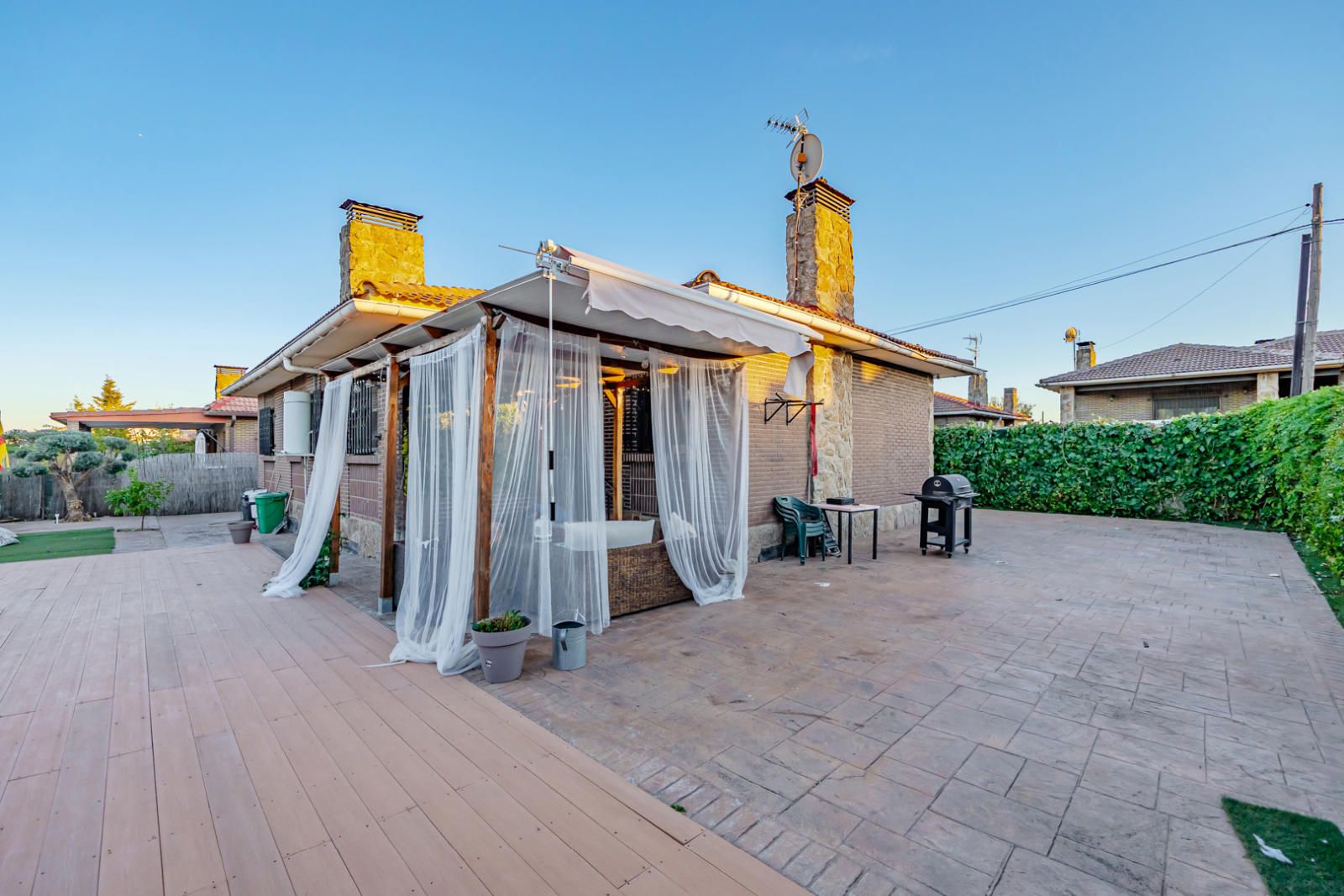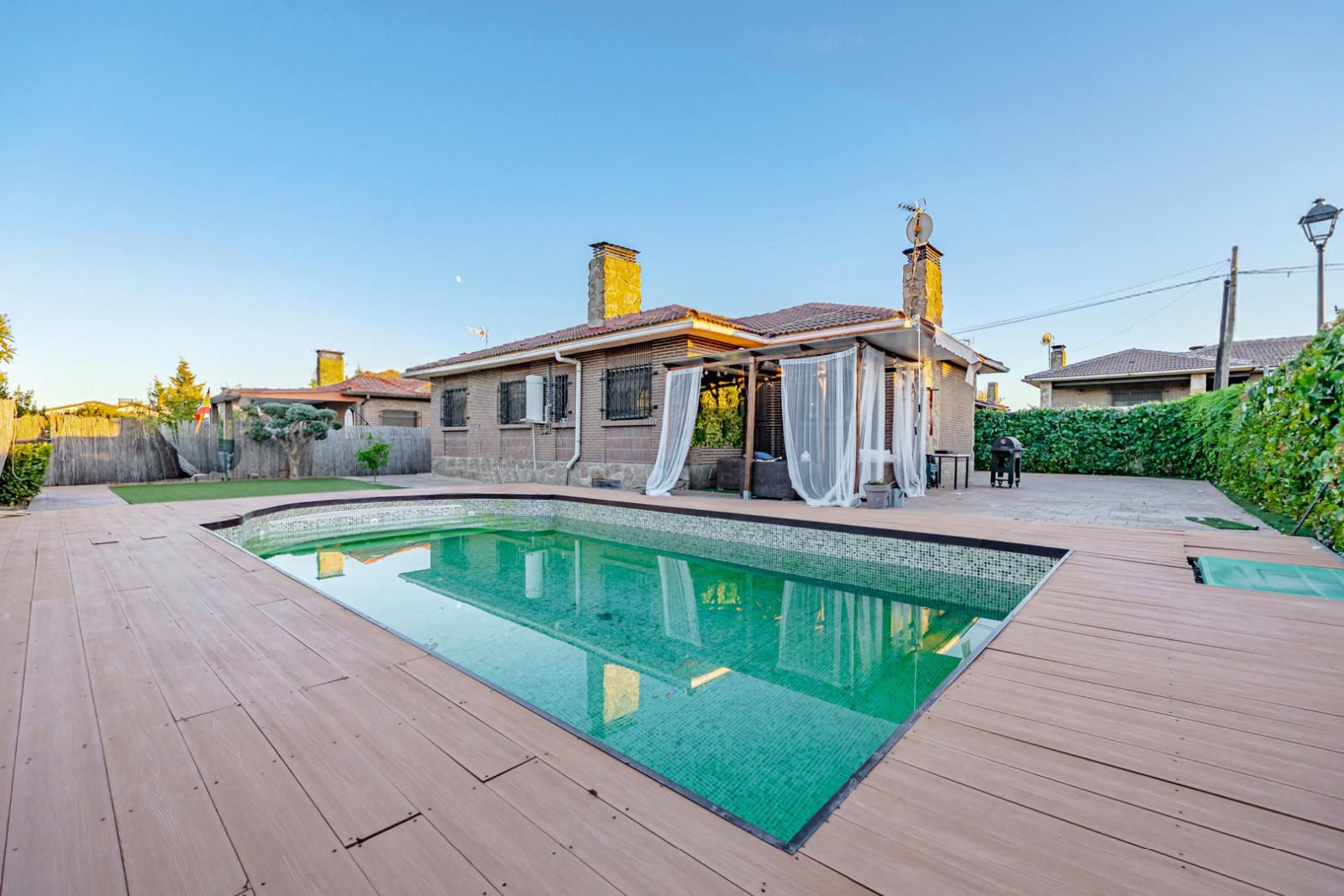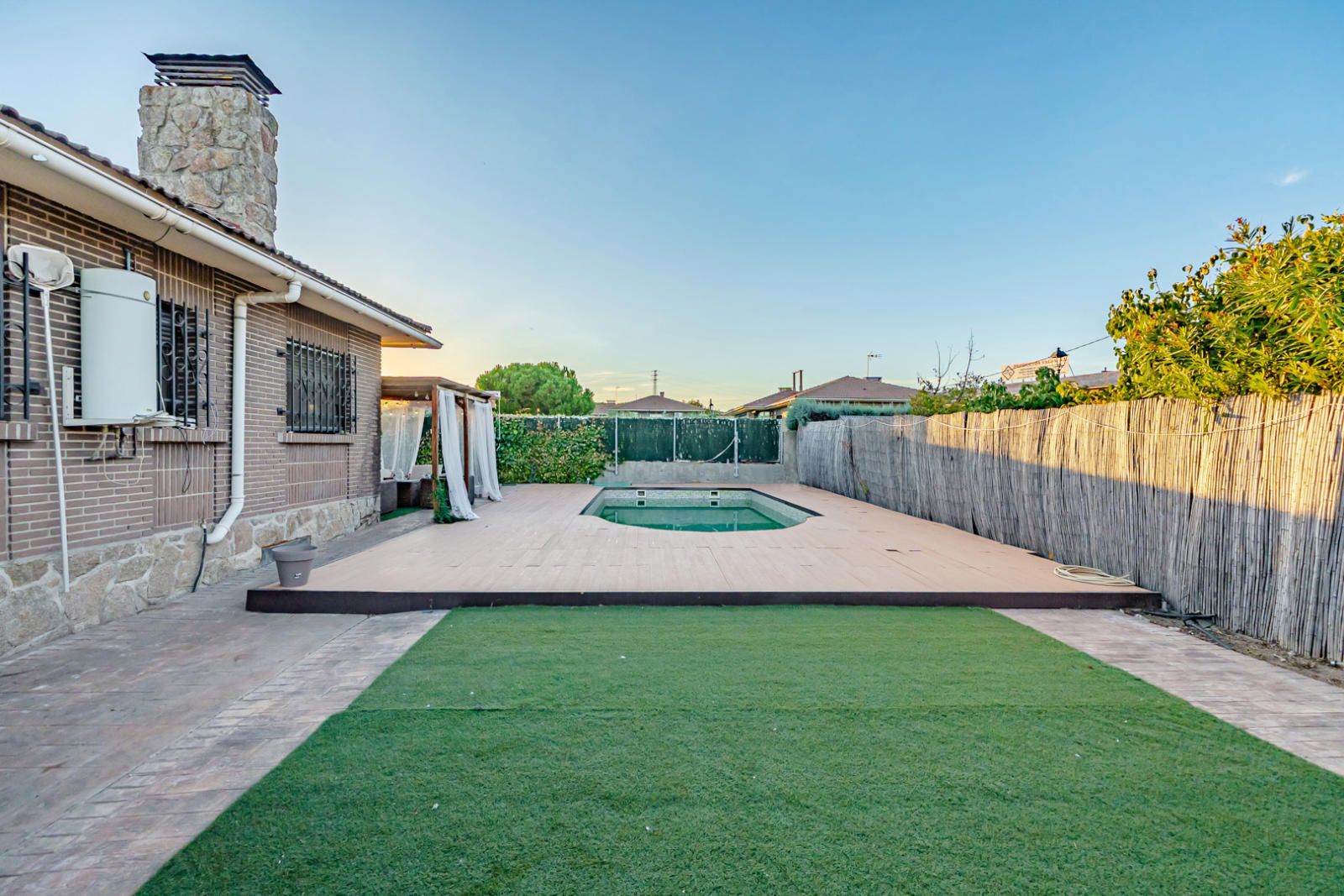Un Oasis Autosuficiente de Tranquilidad y Confort en GriñónDescubre este impresionante chalet independiente, una propiedad que combina a la perfección la comodidad de la vida moderna con la paz y la autosuficiencia energética. Situado en una de las zonas residenciales más tranquilas de Griñón, este hogar ha sido completamente reformado para ofrecer una experiencia de vida excepcional. Con una distribución inteligentemente diseñada en una sola planta principal, se adapta a la perfección a cualquier estilo de vida, desde familias hasta parejas que buscan un refugio de paz. La cercanía a servicios esenciales como paradas de autobús, farmacias, el centro de salud, colegios y zonas deportivas, lo convierte en una opción inigualable.Al cruzar el umbral, te recibirá un luminoso hall de entrada que te invita a explorar una vivienda donde cada espacio ha sido cuidadosamente pensado. La distribución en una sola planta facilita la vida diaria, creando un flujo natural entre las estancias. El corazón de la casa es su espacioso salón comedor, un lugar perfecto para el ocio y el esparcimiento. Con una pared de piedra natural que añade un toque rústico y sofisticado, este espacio es ideal para reunir a la familia o disfrutar de una velada tranquila. La luz natural inunda la estancia gracias a los amplios ventanales, creando una atmósfera cálida y acogedora. Además, el aire acondicionado asegura un confort óptimo durante los meses más cálidos.La cocina es un verdadero deleite para los amantes de la gastronomía. Moderna y funcional, destaca por su elegante península que maximiza el espacio de trabajo y almacenamiento, y un práctico office perfecto para desayunos rápidos o comidas informales. La cocina está equipada con electrodomésticos de alta gama y tiene acceso directo a la parte trasera de la casa, donde se encuentra un encantador porche, el lugar perfecto para disfrutar de comidas al aire libre con vistas al jardín.La planta principal también alberga dos dormitorios que ofrecen privacidad y confort. El dormitorio principal es un auténtico santuario de paz, con su propio baño en suite y un moderno sistema de aire acondicionado que garantiza un descanso reparador. El segundo dormitorio es igualmente espacioso y cuenta con un generoso vestidor, proporcionando una solución de almacenamiento elegante y práctica. La vivienda cuenta con otro baño completo, moderno y funcional, que da servicio a la segunda habitación y a las visitas.Un Paraíso Exterior y una Planta Adicional de VersatilidadEl exterior de la propiedad es un oasis privado que invita a la relajación y al disfrute. El jardín, cuidadosamente diseñado, ofrece un entorno idílico con diferentes áreas de ocio. Una de las zonas más destacadas es la espectacular piscina privada, un espacio refrescante rodeado de una tarima de madera que crea un ambiente de lujo y exclusividad. Cerca de la piscina, se encuentra un acogedor rincón con sillones de exterior bajo un porche, ideal para socializar o simplemente relajarse a la sombra. Un área de césped artificial y otra de baldosas de hormigón impreso ofrecen una variedad de texturas y usos, creando un paisaje exterior dinámico y funcional.Además de la planta principal, la vivienda cuenta con una sorprendente planta inferior, que amplía significativamente las posibilidades de uso del hogar. Esta planta está distribuida en un espacioso salón comedor adicional, perfecto para convertirse en una sala de juegos, un gimnasio en casa, o un cine privado. Un baño completo en esta planta añade gran versatilidad. También se encuentra aquí un cuarto de la colada y un amplio trastero, proporcionando un almacenamiento indispensable para mantener la casa organizada y despejada.Sostenibilidad y Eficiencia EnergéticaLo que realmente distingue a esta propiedad es su compromiso con la sostenibilidad. La instalación de quince placas solares convierte a este chalet en un hogar autosuficiente desde el punto de vista energético, reduciendo drásticamente los costes de electricidad y minimizando su huella de carbono. Esta característica no solo es una inversión inteligente a largo plazo, sino que también ofrece la tranquilidad de saber que vives en una casa moderna y responsable.En resumen, este chalet en Griñón es una oportunidad única de adquirir una vivienda reformada, autosuficiente y con todas las comodidades que podrías desear, en una ubicación privilegiada. Sus espacios interiores luminosos y funcionales, combinados con un espectacular jardín con piscina y la ventaja de una planta inferior versátil, lo convierten en el hogar ideal para aquellos que buscan calidad de vida, confort y sostenibilidad.* El precio de la oferta puede ser modificado o darse de baja sin previo aviso. Todos los datos expuestos son meramente orientativos. El precio no incluye impuestos ni gastos. Se debe añadir a la compra en viviendas de segunda mano el ITP, ( según tramo de precio, ) en viviendas de Obra Nueva el IVA y AJD y en ambos casos los honorarios de notaria y registro*.