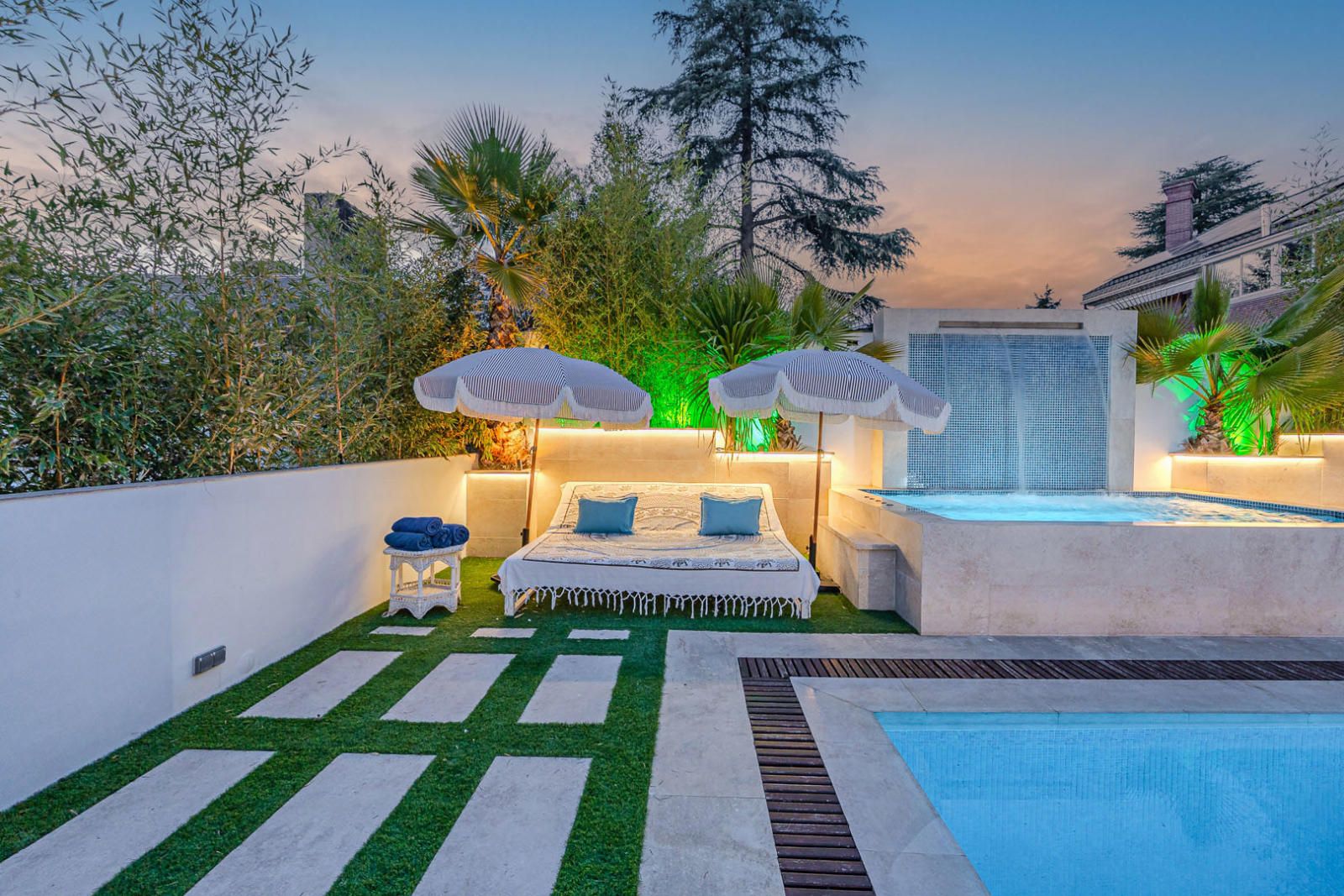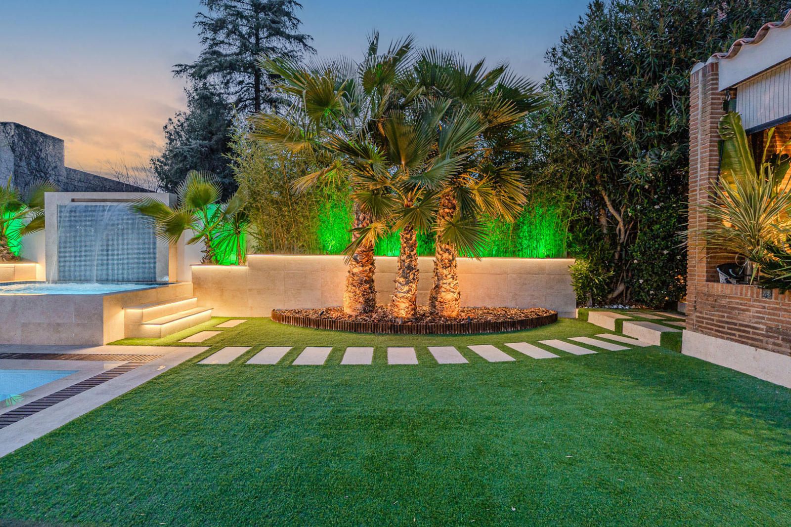 Dispone de amplios exteriores, jardín en perfecto cuidado, cascada, iluminación exterior minimalista y zona de relax. En el exterior te encontrarás dos porches cubiertos cuidados al detalle para deleitarte y celebrar momentos únicos con tus familiares y amigos.