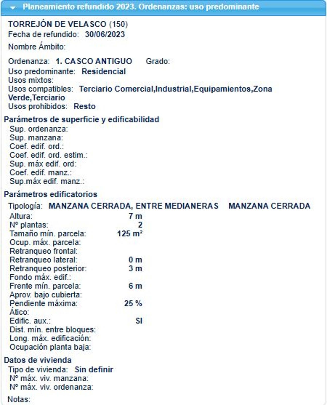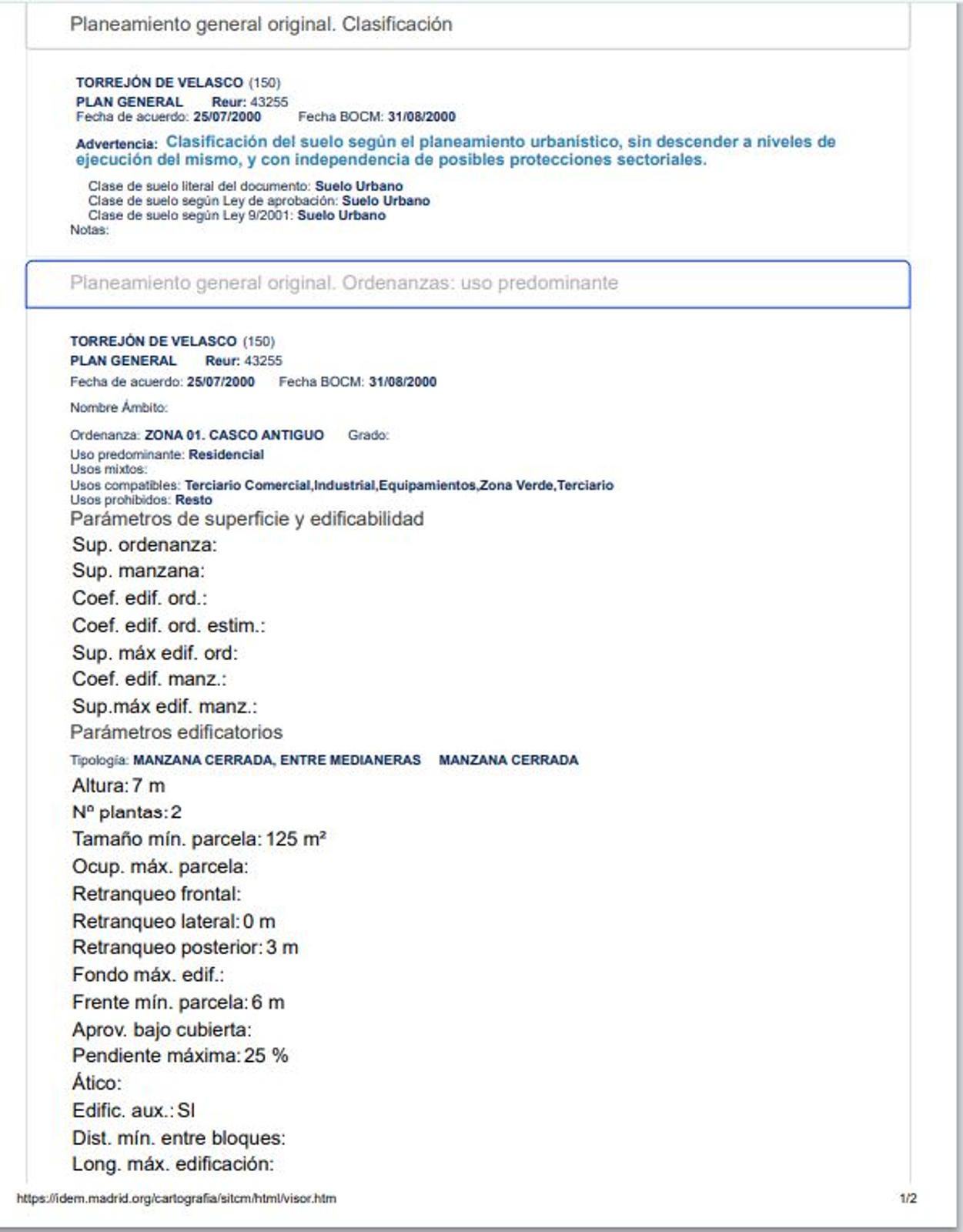 OPORTUNIDAD ÚNICA: COMO SOLAR RESIDENCIAL DE 146 M² EN EL CORAZÓN DEL CASCO ANTIGUO DE TORREJÓN DE VELASCO. ¡PROYECTA LA CASA DE TUS SUEÑOS!Como experto inmobiliario, me complace presentar una de las oportunidades de inversión y desarrollo más atractivas del momento en el Corredor Sur de Madrid: un solar urbano de 146 m² en el centro neurálgico de Torrejón de Velasco, listo para ser transformado en una magnífica edificación moderna y funcional. Ubicación de Prestigio y TranquilidadEl activo se encuentra estratégicamente ubicado en el vibrante núcleo del Casco Antiguo de Torrejón de Velasco. Esta localización no solo garantiza la pertenencia a un entorno urbano consolidado y tradicional, sino que también ofrece la comodidad de tener a mano todos los servicios esenciales: comercios locales, centros de salud, colegios y transporte público. Torrejón de Velasco es un municipio en crecimiento, que combina la calidad de vida y la tranquilidad de una localidad apacible con una excelente comunicación con la capital y los principales ejes de la Comunidad de Madrid. Su clasificación como suelo urbano asegura la viabilidad y la seguridad jurídica de la inversión.El Activo: Un Solar con Potencial PuroEs fundamental ser explícitos sobre el estado actual de la propiedad: la parcela incluye una construcción preexistente de 122 m² que se encuentra en un estado de ruina. Por lo tanto, esta venta se plantea claramente como la adquisición de un solar con construcción ruinosa cuyo objetivo principal es el derribo para permitir una nueva edificación. Al adquirir un solar listo para demoler, se evitan las complejas limitaciones y costosas rehabilitaciones de estructuras antiguas, ofreciendo la libertad total de diseñar un proyecto desde cero, adaptado a las normativas actuales y a las necesidades del siglo XXI.Parámetros Edificatorios: La Clave de su ValorEl verdadero valor de esta parcela reside en sus óptimos parámetros urbanísticos, los cuales garantizan una alta edificabilidad y versatilidad.Uso Principal y Compatibles: El uso predominante es Residencial, ideal para la construcción de una o dos viviendas, o incluso una vivienda unifamiliar de lujo. La ordenanza permite, además, una amplia gama de usos compatibles, incluyendo Terciario Comercial, Industrial, Equipamientos, Zona Verde y otros usos Terciarios. Esto abre la puerta a proyectos mixtos, como una planta baja dedicada a un local comercial o despacho profesional, con viviendas en las plantas superiores, maximizando así la rentabilidad.Tipología y Dimensiones: La parcela está clasificada bajo la tipología de Manzana Cerrada, Entre Medianeras, que es la más eficiente en términos de aprovechamiento de superficie en entornos urbanos consolidados. El terreno cumple sobradamente con el tamaño mínimo de parcela exigido, que es de 125 m² (siendo esta parcela de 146 m²), y cuenta con un frente mínimo de parcela requerido de 6 metros.Altura y Plantas: La normativa permite una altura máxima de 7 metros, lo que se traduce en un máximo de 2 plantas (Baja + Primera), permitiendo diseños interiores amplios y luminosos.Retranqueos para un Diseño Óptimo: Uno de los mayores atractivos es la minimización de los retranqueos. El Retranqueo Frontal es de 0 metros, lo que implica la construcción alineada al vial, optimizando la fachada y la superficie construida. El Retranqueo Posterior es de tan solo 3 metros, garantizando un espacio exterior privado (patio o jardín) de gran valor sin sacrificar excesiva edificabilidad.Aprovechamiento Adicional (Bajo Cubierta): La ordenanza permite el aprovechamiento del Ático (bajo cubierta), con una pendiente máxima del 25%, lo que significa que se puede sumar una superficie adicional muy valiosa para estudio, trastero o espacio complementario, maximizando aún más los metros útiles de la vivienda. Se permite también la construcción de Edificaciones Auxiliares.Una Inversión InteligenteAdquirir este inmueble por 115.000 € es un proyecto es ideal para:El particular: Que sueña con una casa a medida, diseñada al milímetro, con patio, dos plantas amplias en el centro de su pueblo.El inversor: Que busca un proyecto de promoción para construir una pequeña promoción de viviendas o un edificio de uso mixto (comercial/residencial) con una alta tasa de retorno.Esta es una oportunidad que, por su ubicación, superficie y edificabilidad, se encuentra muy por debajo de la media en el mercado de suelo urbano consolidado. No deje pasar la posibilidad de convertir una antigua ruina en un referente arquitectónico en Torrejón de Velasco.